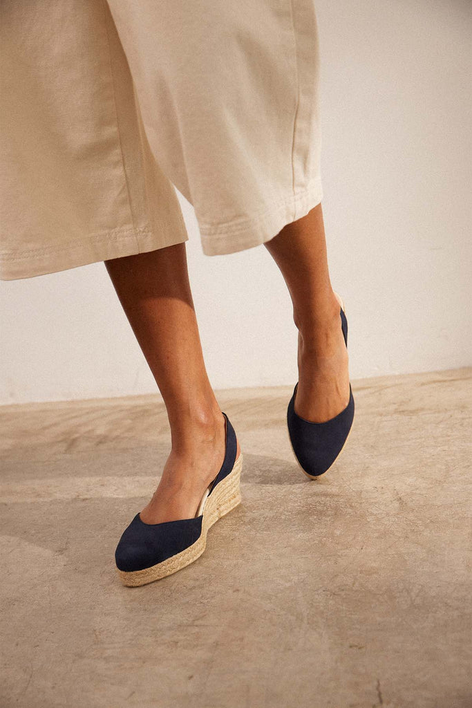 Alpargata cuña baja en piel ante azul marino - 7 cm