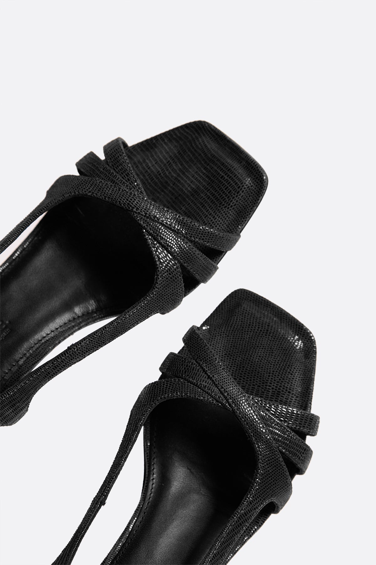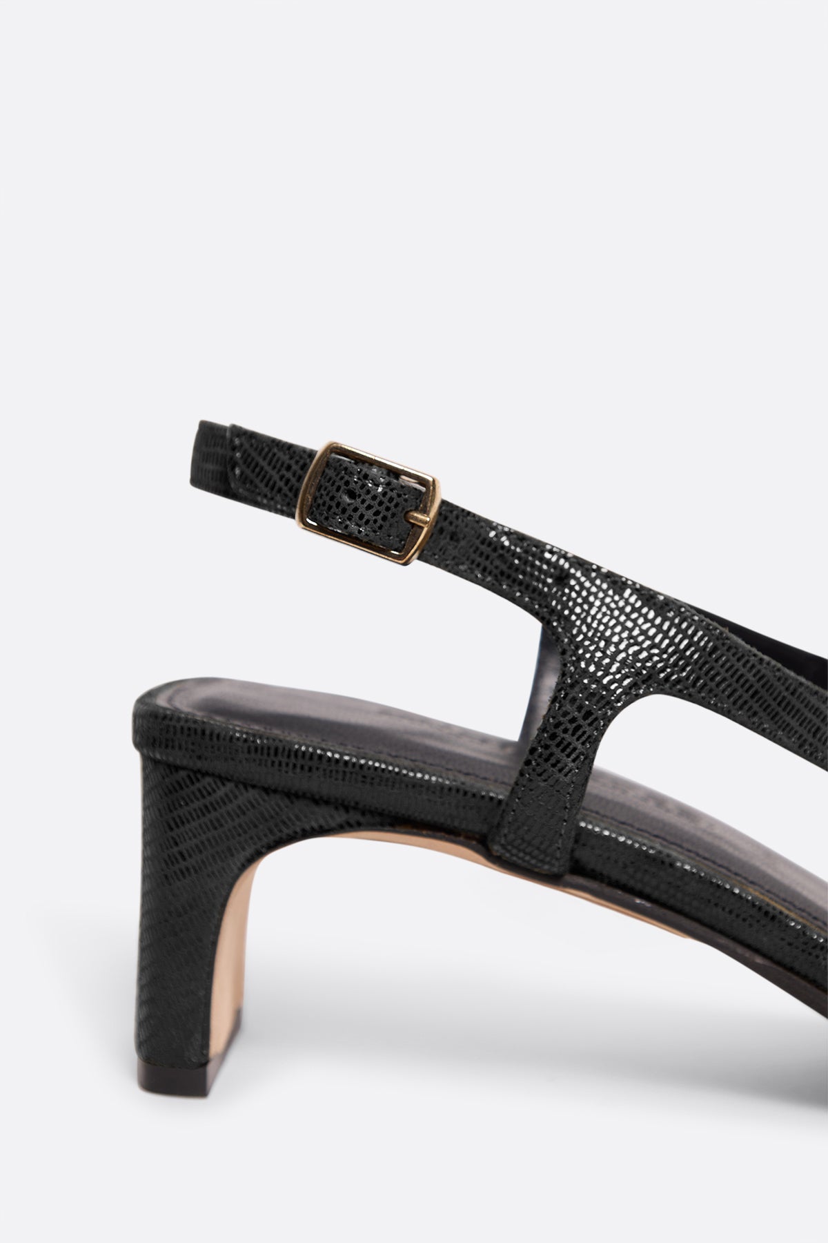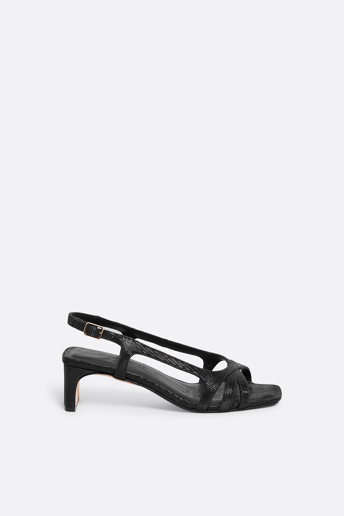 Sandalia de piel negra con tacón medio