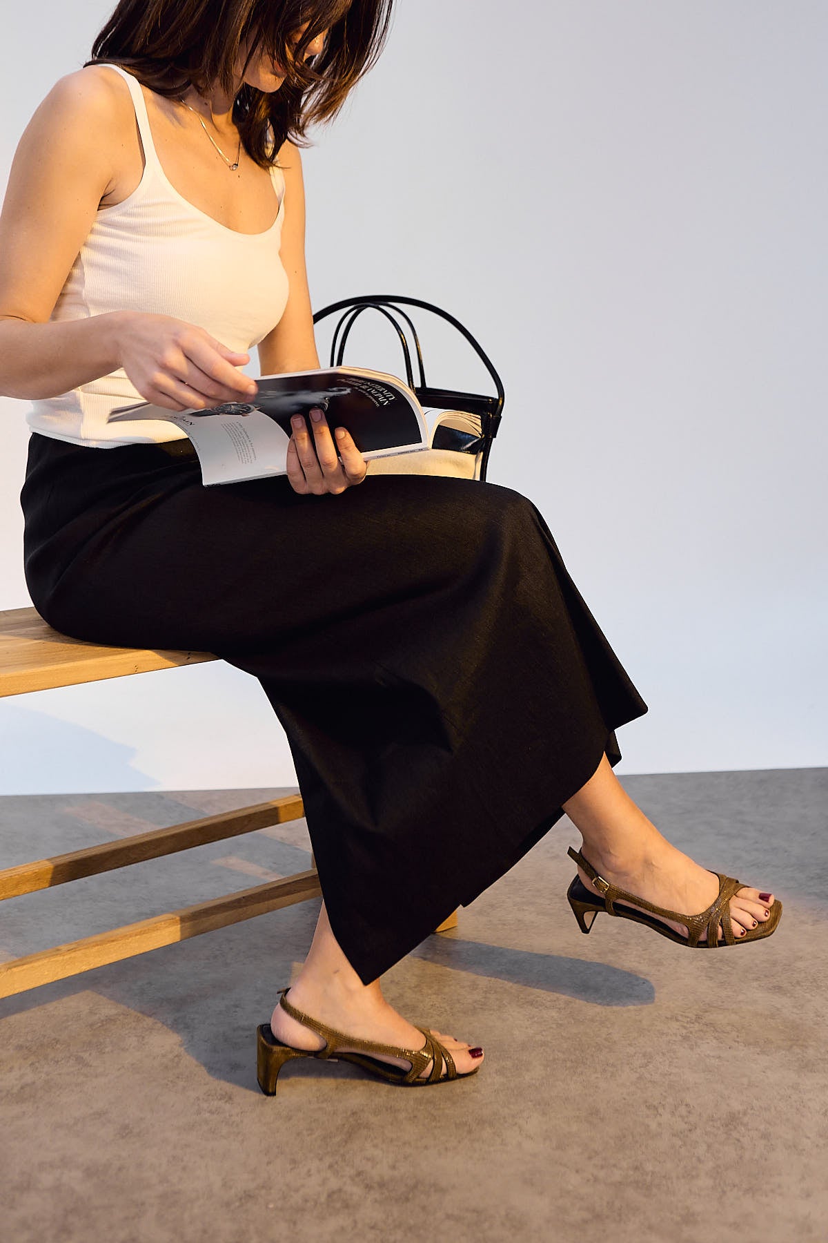 Producción artesanal, materiales cuidadosamente seleccionados y una piel extremadamente suave son la carta de presentación de las sandalias Mia. Su diseño es una mezcla entre sofisticación y funcionalidad que nunca falla. Tiras de piel que bordean el pie y lo estilizan, ajustándose al talón con un broche de hebilla. Puntera sutilmente cuadrada y tacón rectangular de 6 cm.