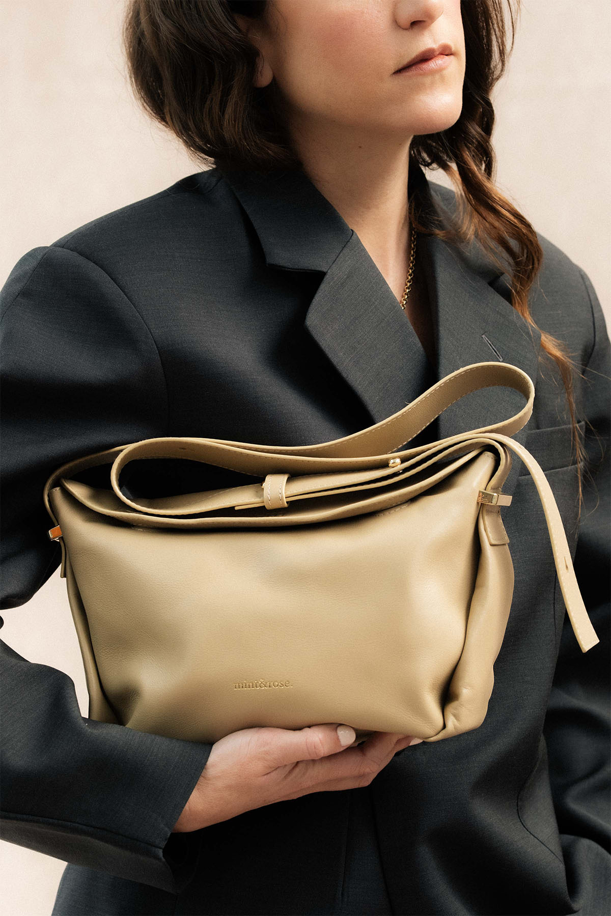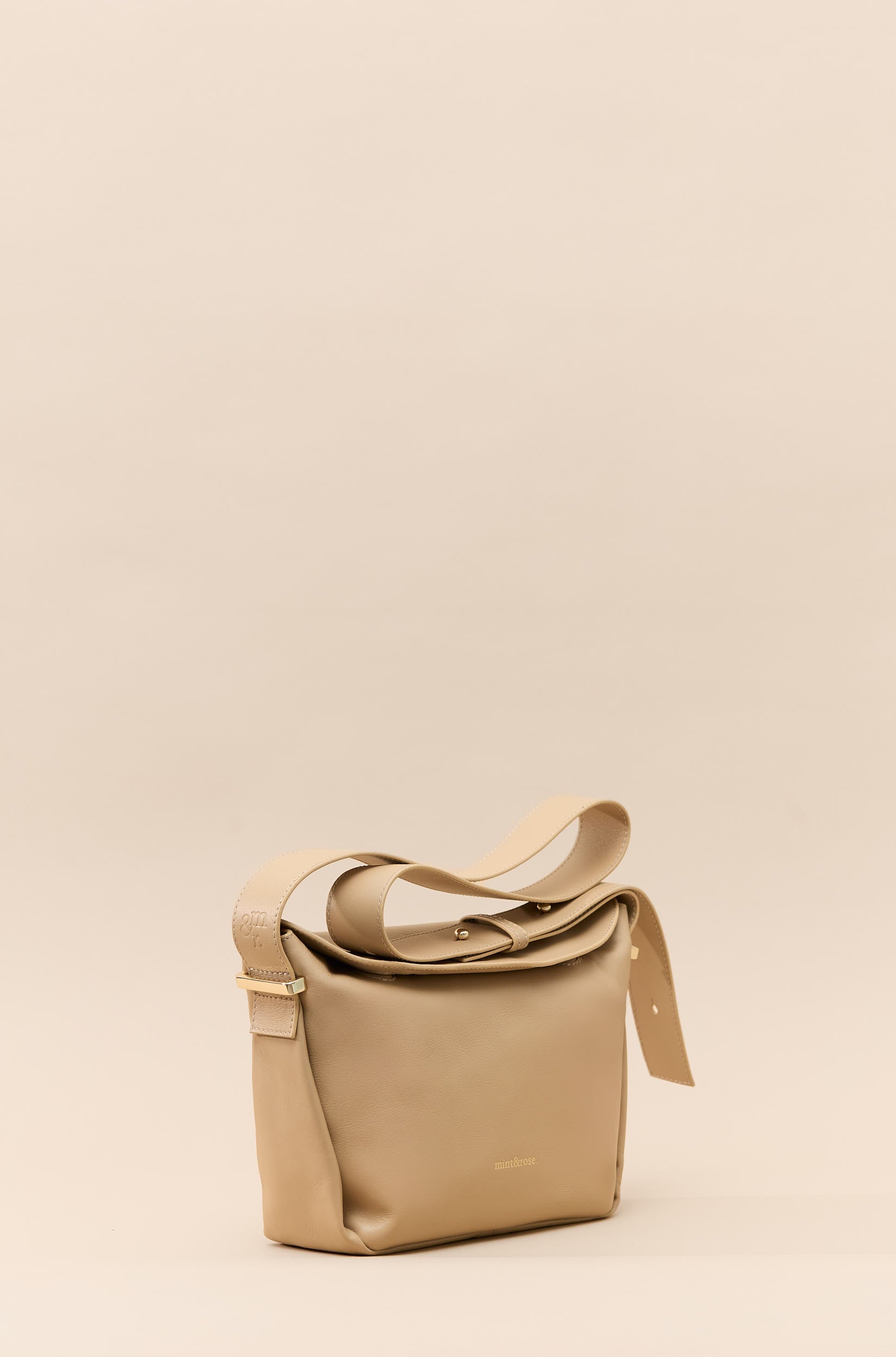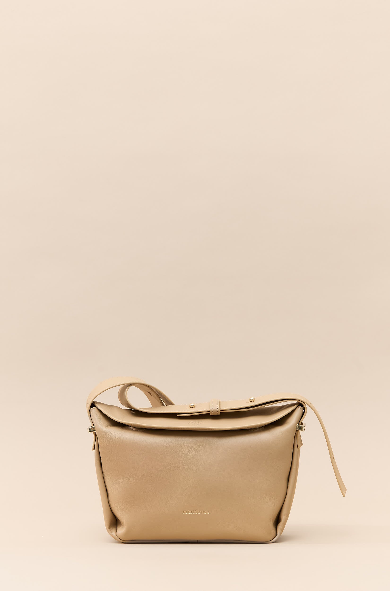 Bolso trapecio mediano de piel beige