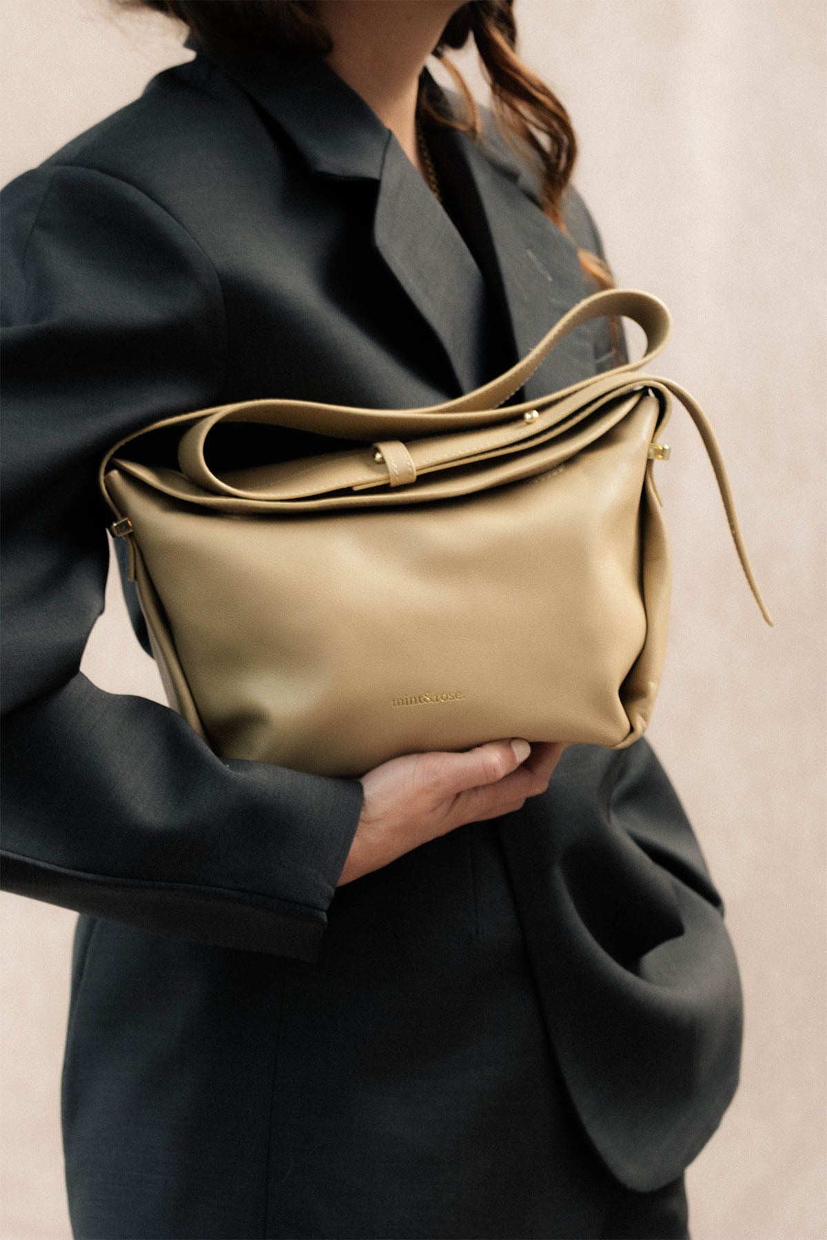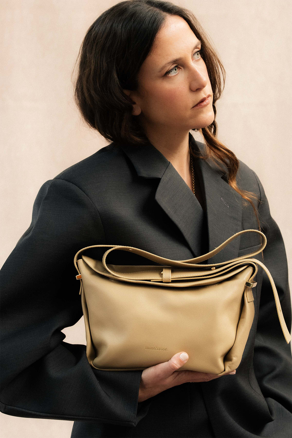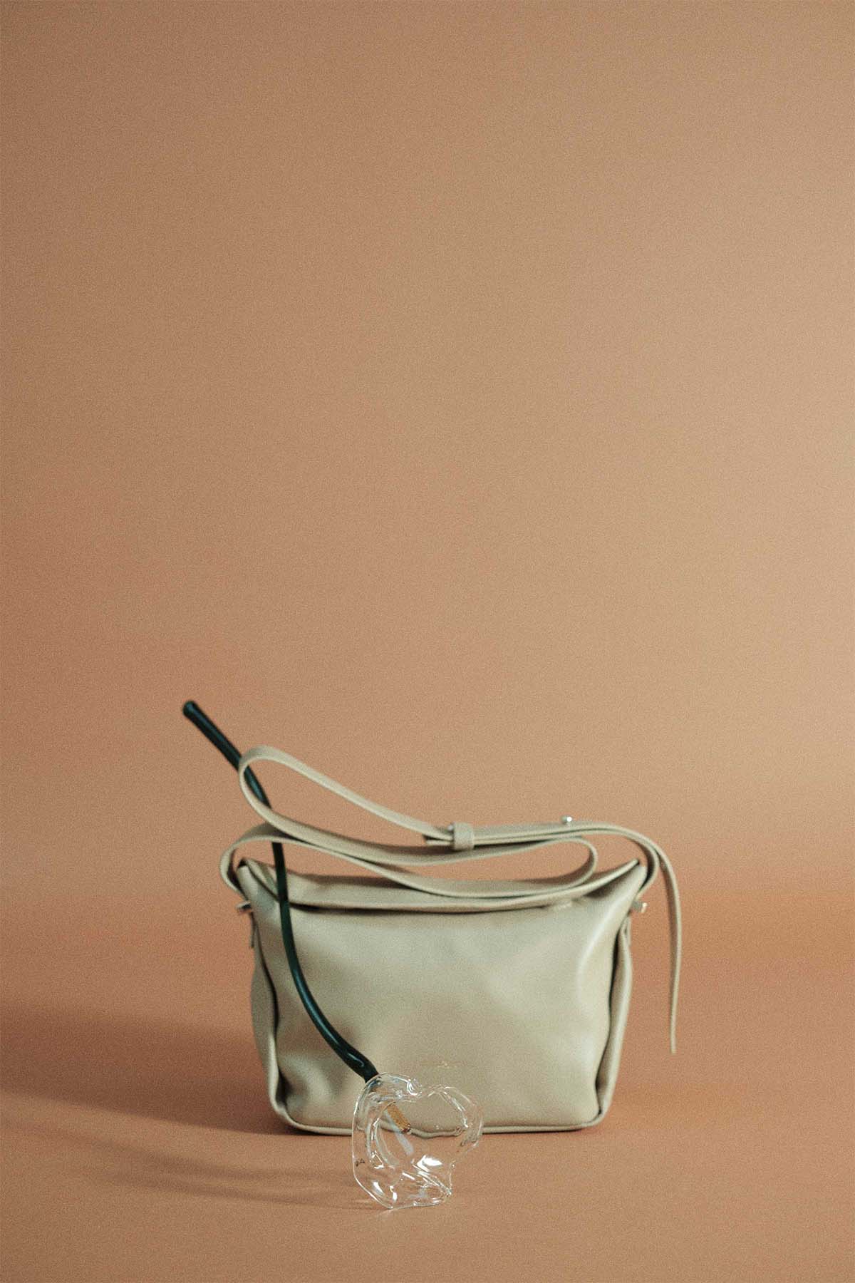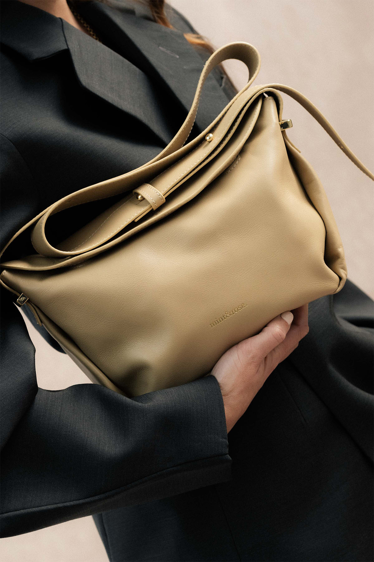 Bolso trapecio mediano de piel beige