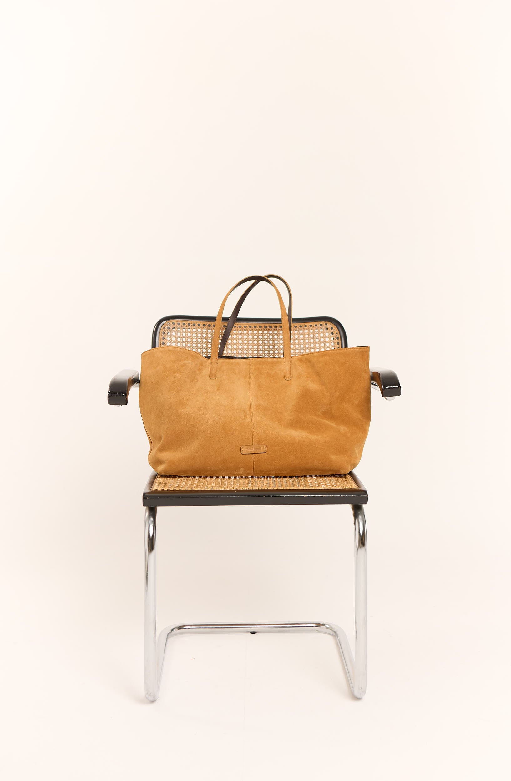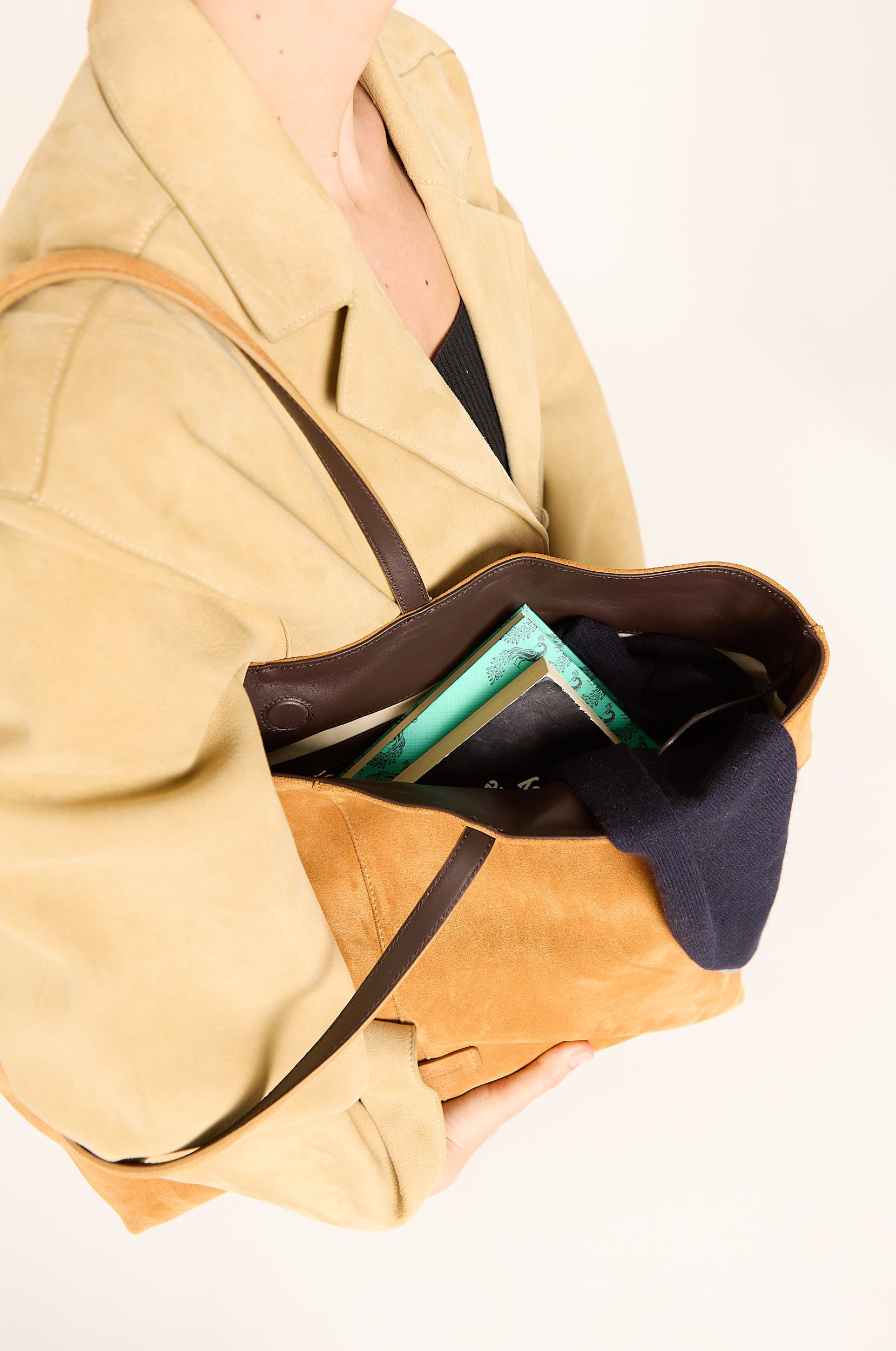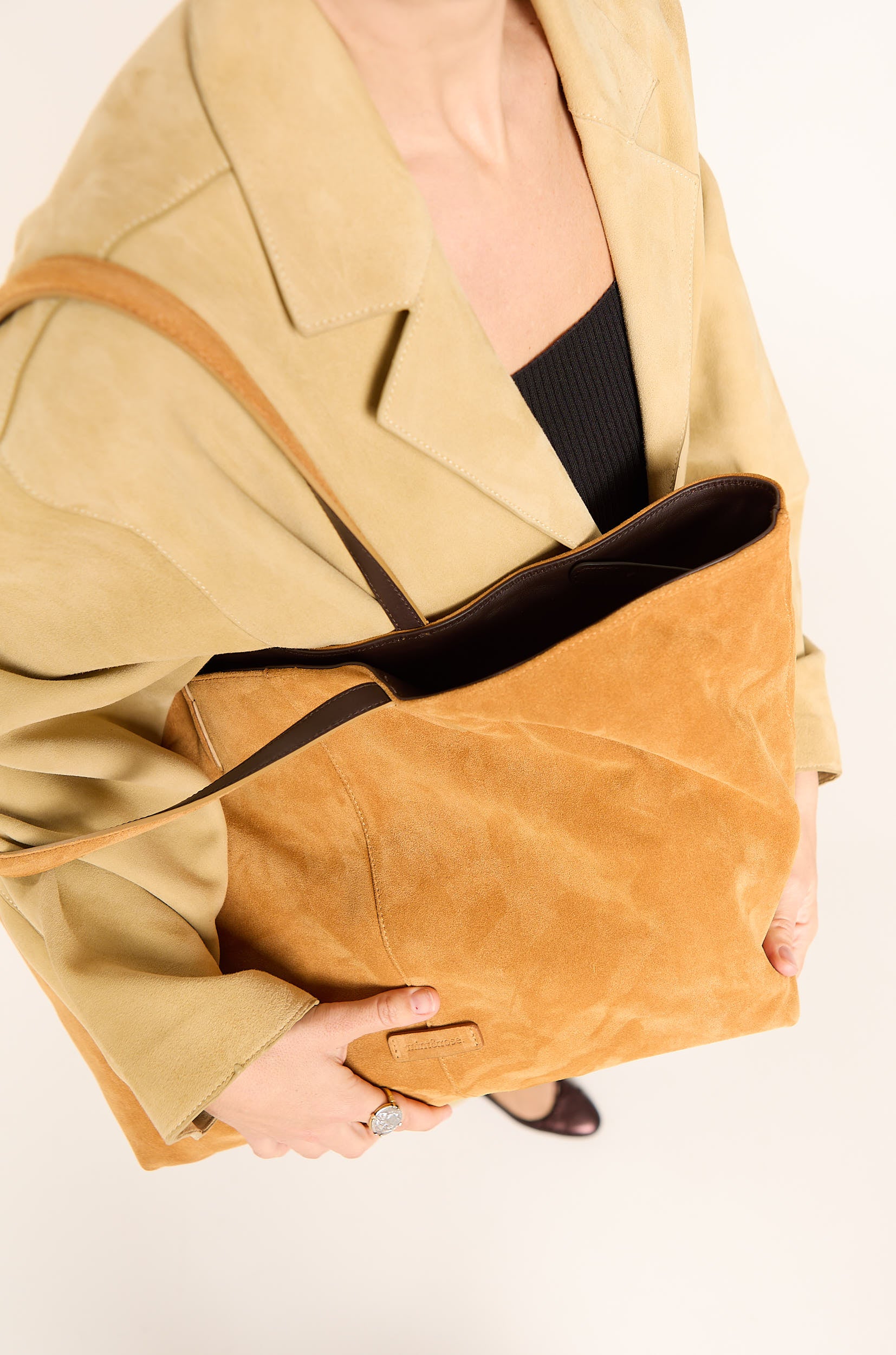 Lo que más nos gusta: Su piel de serraje camel y su tamaño maxi