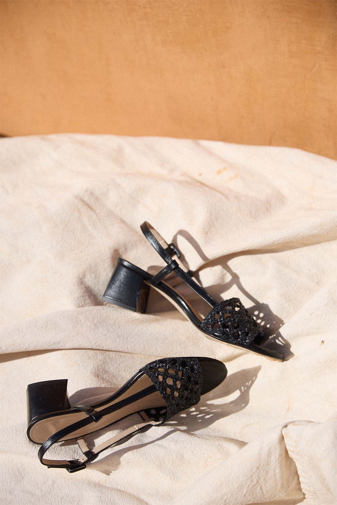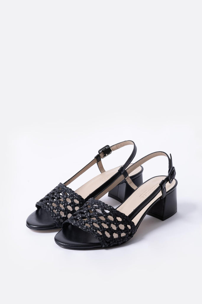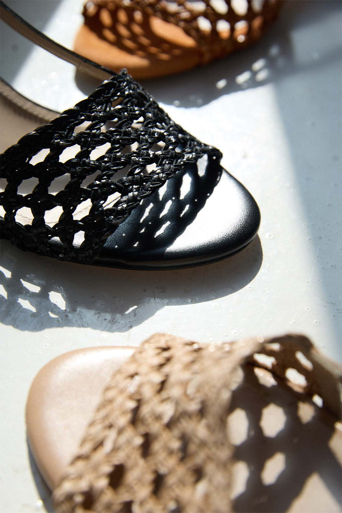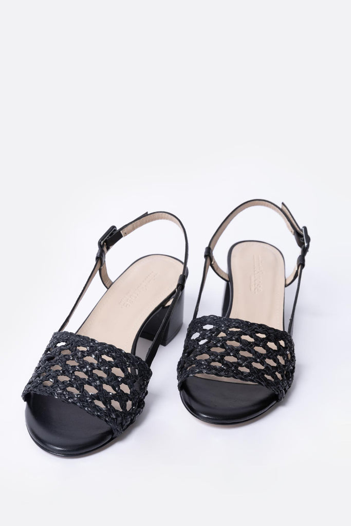 Sandalia baja trenzada en piel negra