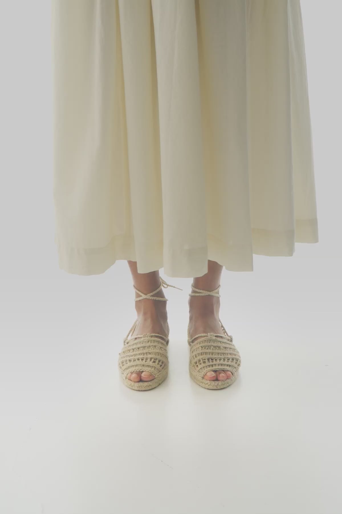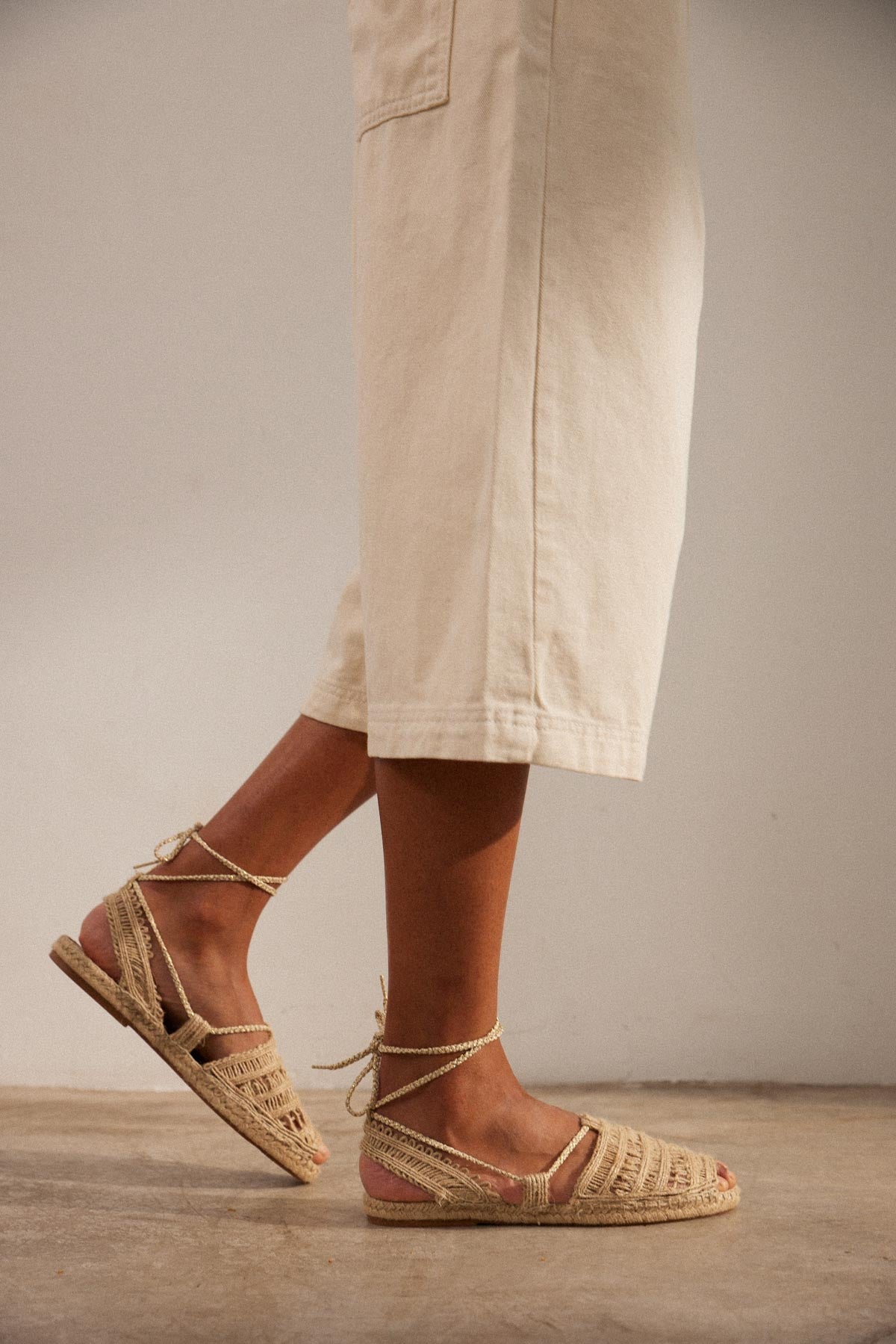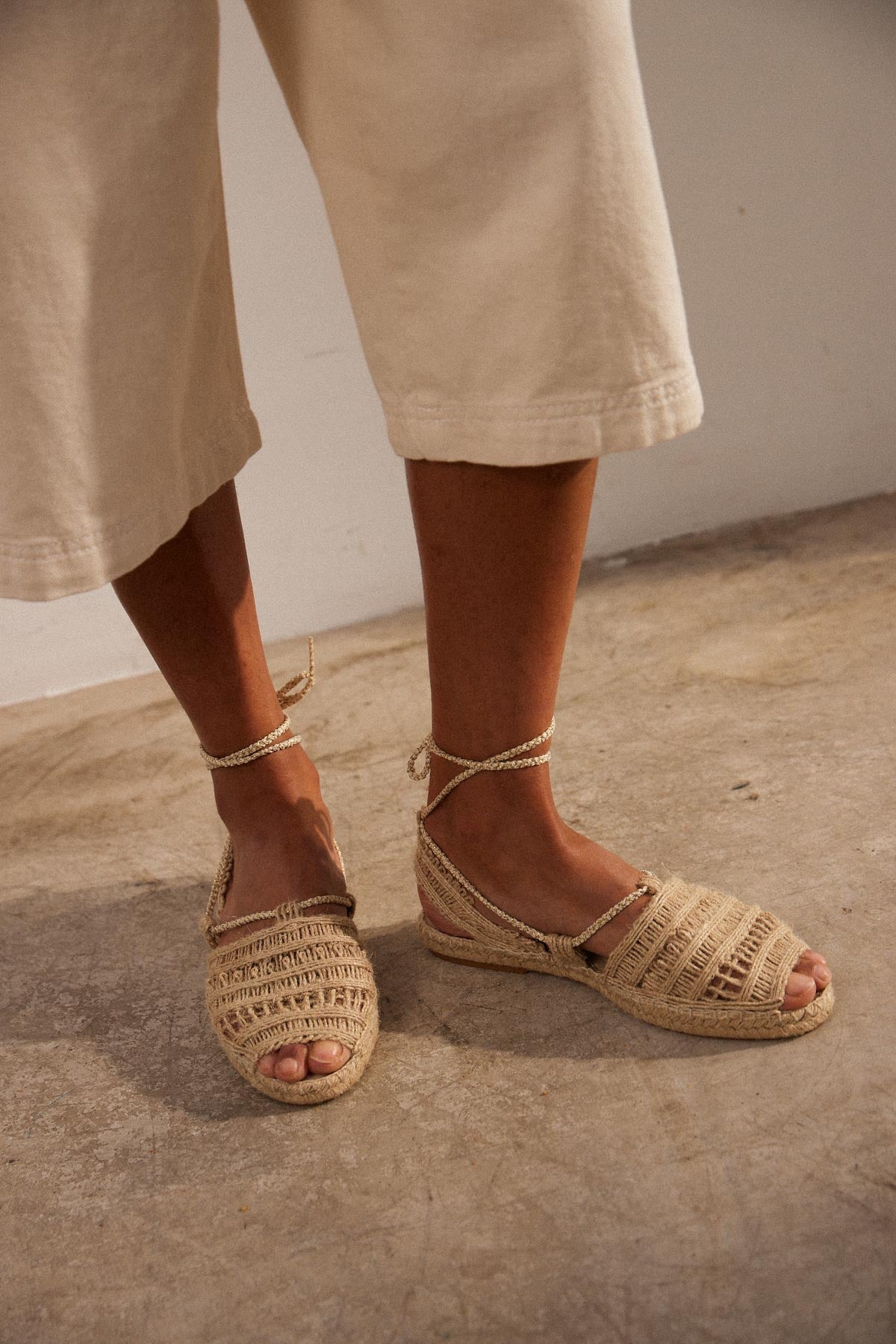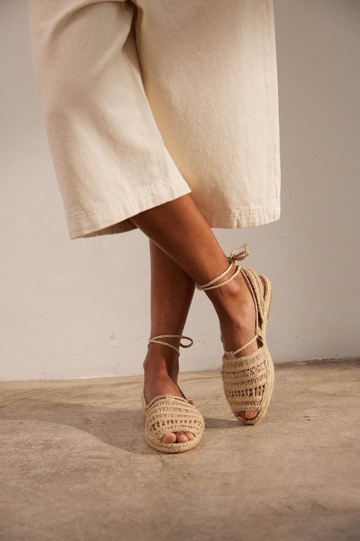 Diseño mediterráneo, producción artesanal y materiales cuidadosamente seleccionados se unen para dar lugar a las alpargatas Sabine. Dejarlas entrar en tu armario es apostar por básicos que duren más tiempo. Un clásico renovado, con puntera abierta y tira trasera que sujeta el pie. Suela de piel y plataforma de yute trenzado de 1,6 cm.