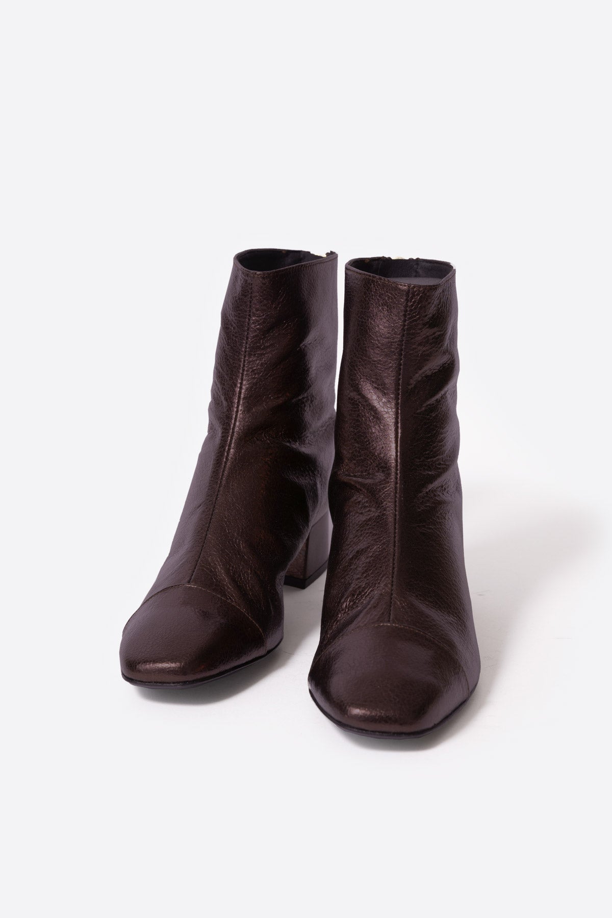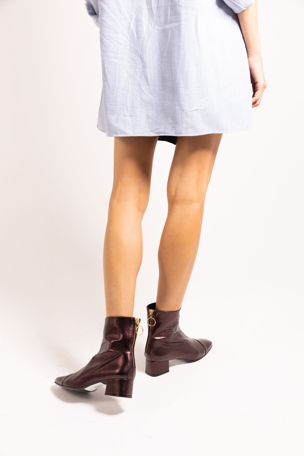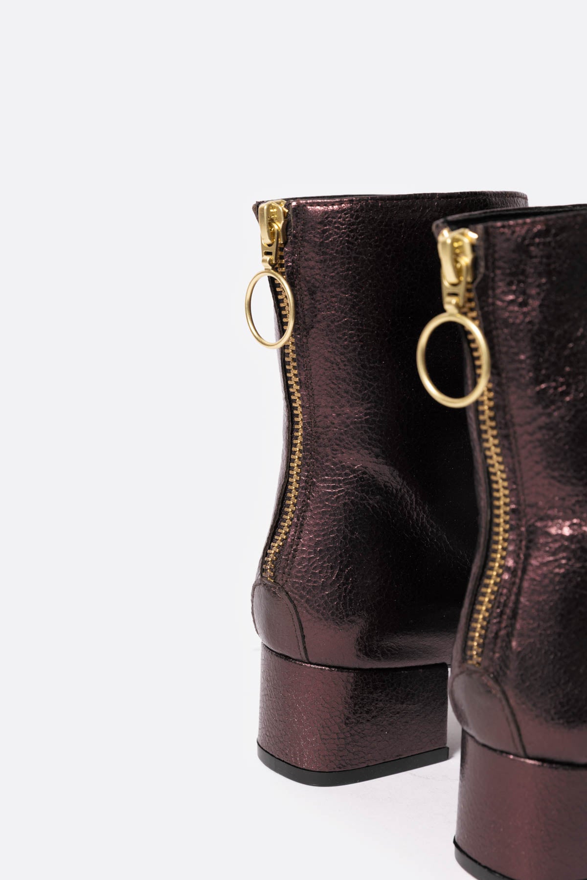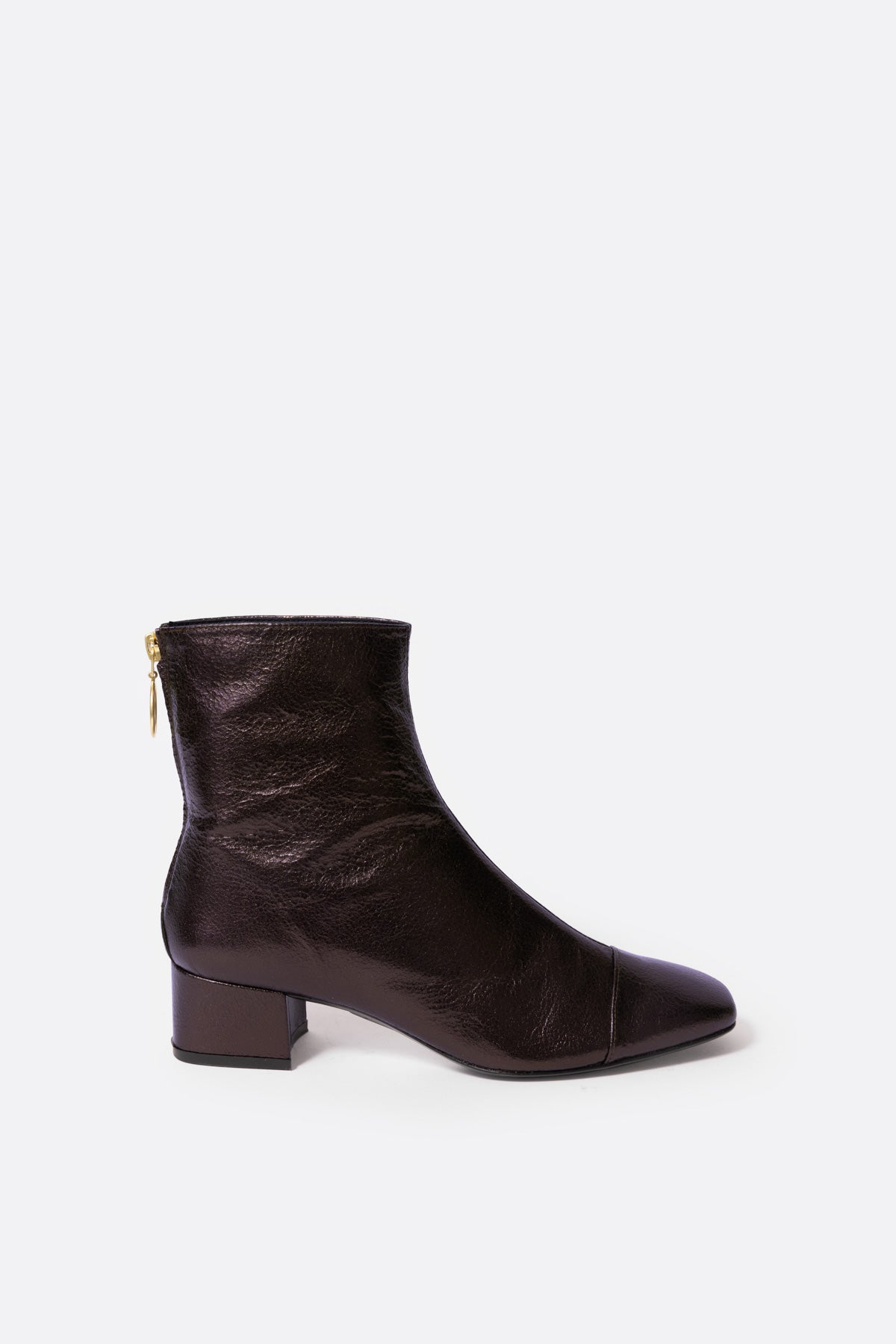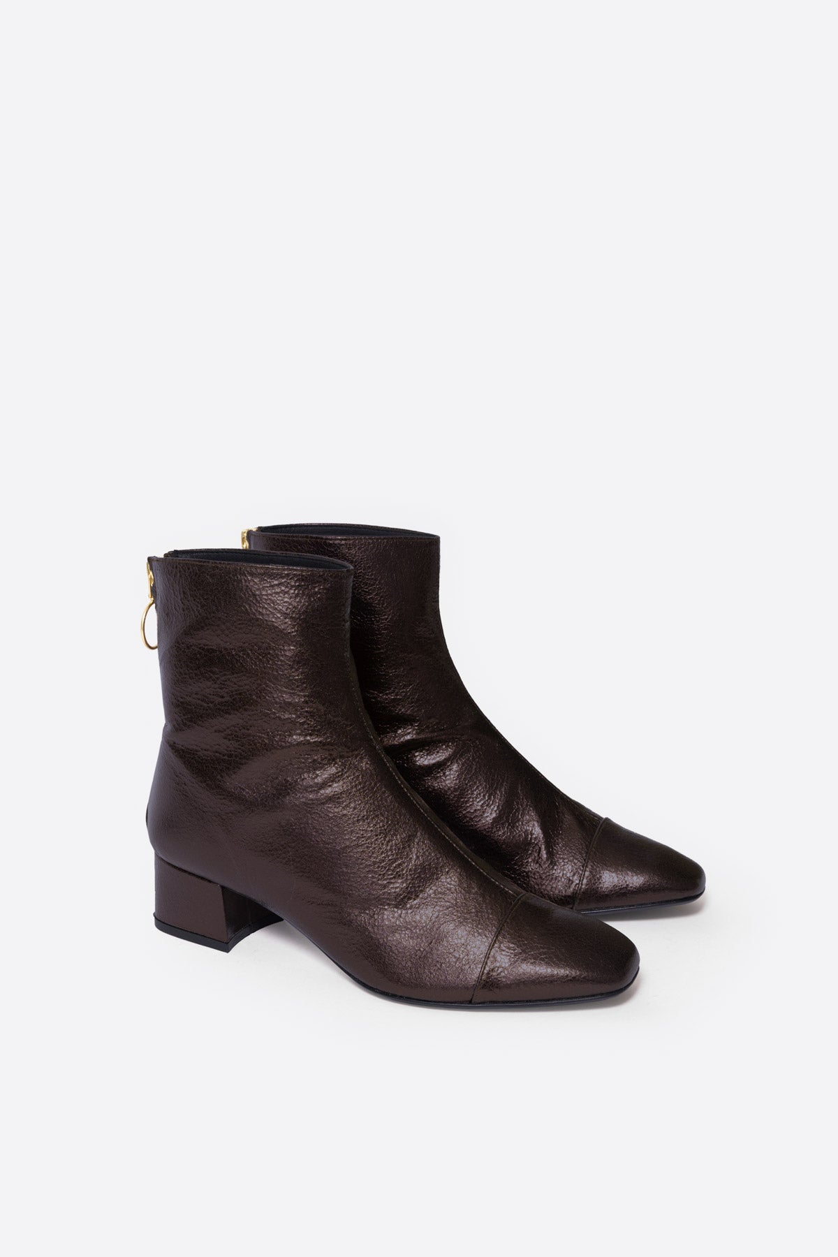 Los botines Sol son una pieza esencial con diseño versátil y atemporal, elaboradas localmente con materiales de alta calidad que prometen perdurar en el tiempo. Su diseño es un clásico pero con multitud de pequeños detalles que los convierten en el botín perfecto. Puntera sutilmente cuadrada, caña que se afina a la altura del tobillo, cremallera dorada con tirador de diseño en la parte trasera, y tacón de 4,5 cm en bloque y forma de U. Plantilla cloud acolchada para la máxima comodidad. Altura de caña: 15 cm. Anchura de caña: 5 cm.
